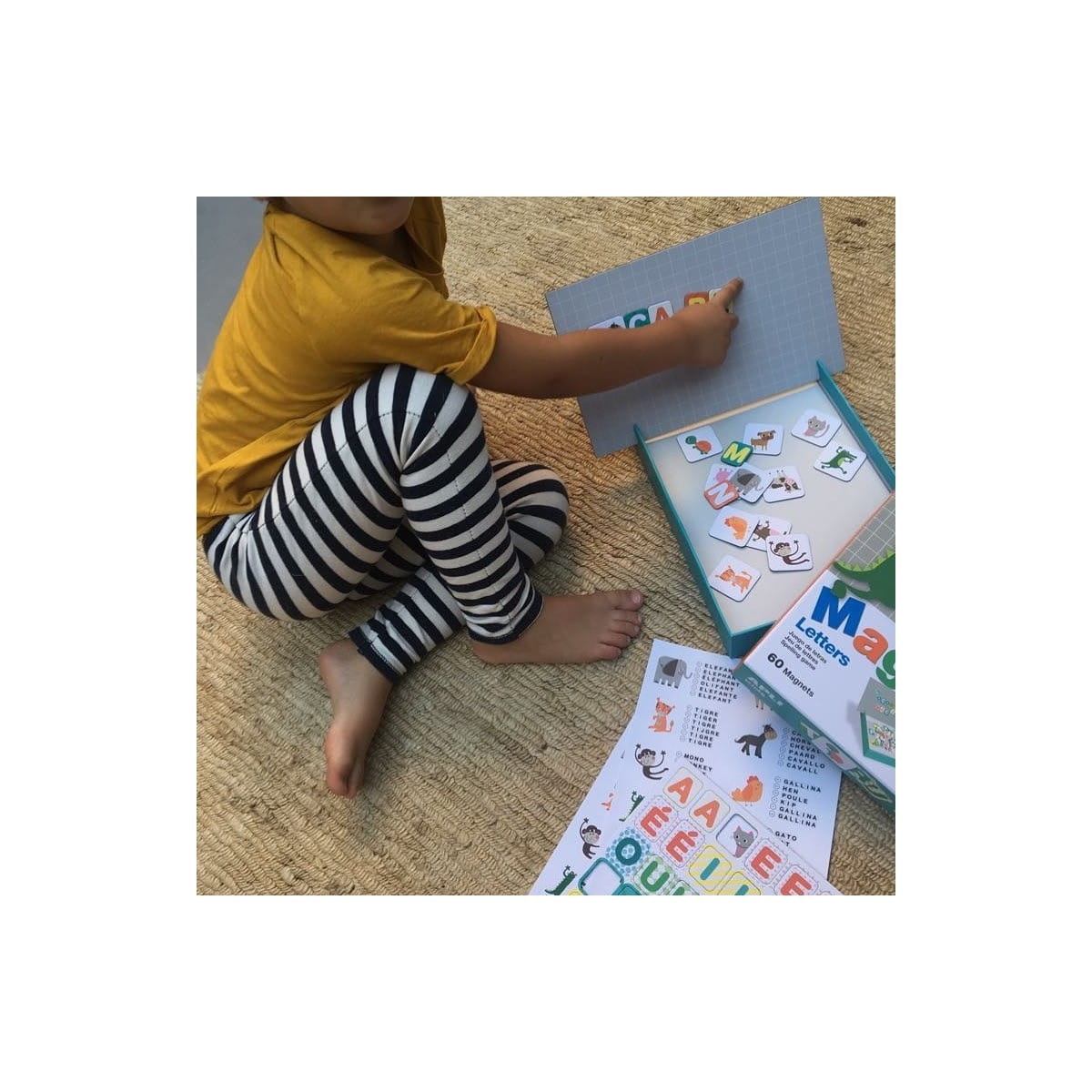Zabawa magnesami pozwala dzieciom tworzyć unikatowe kompozycje oraz barwne historie. Podczas twórczości uczą się emocji, odkrywają świat oraz rozwijają wyobraźnię. Magnetyczna układanka Apli Kids doskonale łączy naukę z zabawą. Polega na odpowiednim ułożeniu nazw zwierząt z magnesów na planszy bądź wymyśleniu własnych słów. W zestawie znajduje się 60 magnetycznych elementów przedstawiających literki oraz zwierzęta. Plansza do układania magnesów mieści się w podstawie pudełka. Zestaw został zapakowany w trwałe, estetyczne pudełko dzięki czemu może być świetnym prezentem. Idealnie nadaje się także do zabawy w podróży.