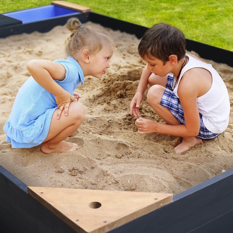 - W zestawie pokrywa i mata chroniąca piasek. Mieści do 450 kg piasku. Odporna na warunki atmosferyczne, łatwa w montażu.