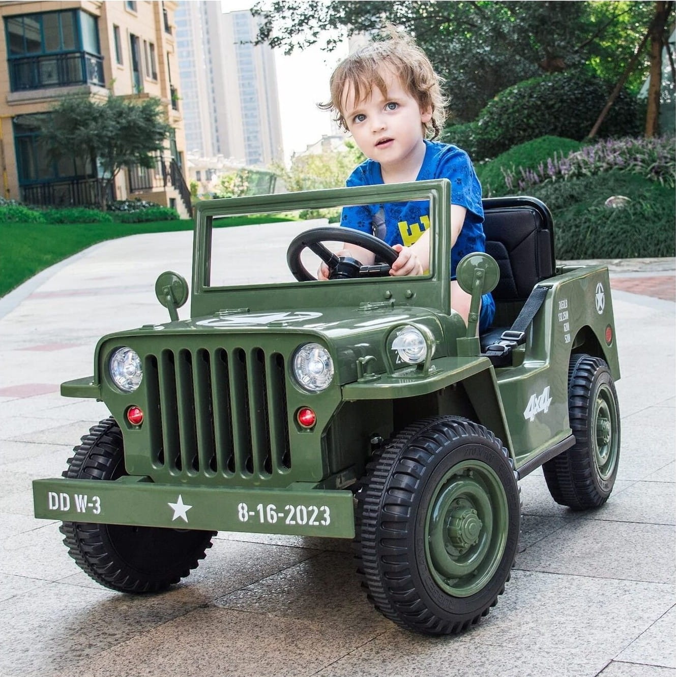Wspaniały pojazd akumulatorowy dla dzieci w wojskowym stylu retro to prawdziwa gratka dla miłośników motoryzacji. Autko z pewnością przyciągnie uwagę dziecka, rodziców, jak i rówieśników. Mocny napęd 4x35W w połączeniu z akumulatorem o pojemności 7 Ah zapewni odpowiednie walory jezdne a amortyzowane koła 26 cm pozwolą na komfortową jazdę czy to na asfalcie, czy gruntowej drodze. W zestawie znajduje się przydatna "saperka" do zabawy w piasku.
