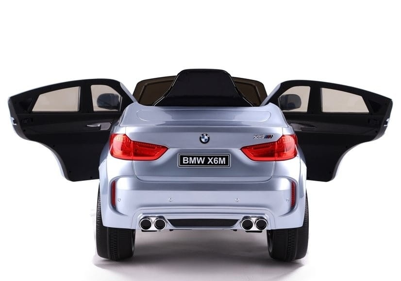 Wnętrze samochodu na akumulator BMW X6 z pewnością spełni nie tylko oczekiwania dziecka, ale i dorosłych fanów marki. Czarne elementy wzorowane na wyposażeniu wersji BMW X6 dla dorosłych pozwolą poczuć się każdemu maluchowi jak w prawdziwym samochodzie. Wrażenia te dodatkowo spotęguje miękka kanapa wykonana ze skóry ekologicznej, a także kierownica z przyciskami muzycznymi i klaksonem. Jednak to nie wszystko, co skrywa połyskujący, srebrny model BMW X6. W jego wyposażeniu znajduje się podświetlana na niebiesko deska rozdzielcza z zegarami imitującymi prędkościomierz i obrotomierz, a także radio z portem USB i wejściem na MP3, co pozwoli na podróżowanie w rytmie ulubionych melodii małego kierowcy. Radio posiada funkcję zmiany piosenek oraz regulacji poziomu głośności. Uważamy, że dodatki te sprawią, że każdy kilkulatek z łatwością wczuje się w rolę kierowcy.