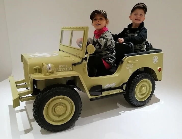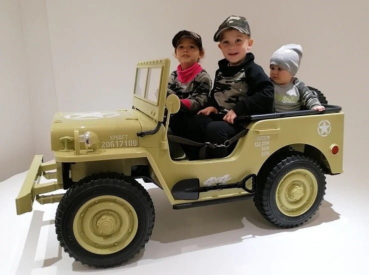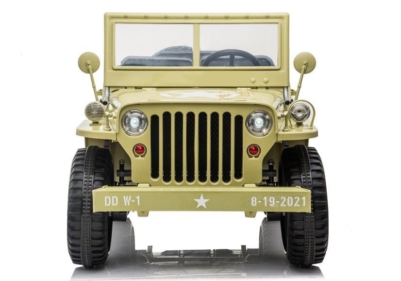 Wspaniały pojazd akumulatorowy dla dzieci w wojskowym stylu retro! Wyposażony w aż 3 siedziska dla dzieci o maksymalnym łącznym obciążeniu 60 kg. To nie lada gratka dla małych miłośników samochodów wojskowych. Mocny napęd 4x45W w połączeniu z akumulatorem 12V pozwalają na zabawę w lekkim terenie, np. na podwórku, na drodze gruntowej czy asfalcie. Samochód posiada 37 centymetrowe amortyzowane koła z pianki EVA, które zwiększają komfort jazdy. Wykonany z dbałością o detale z pewnością stanie się obiektem zachwytu rówieśników.
