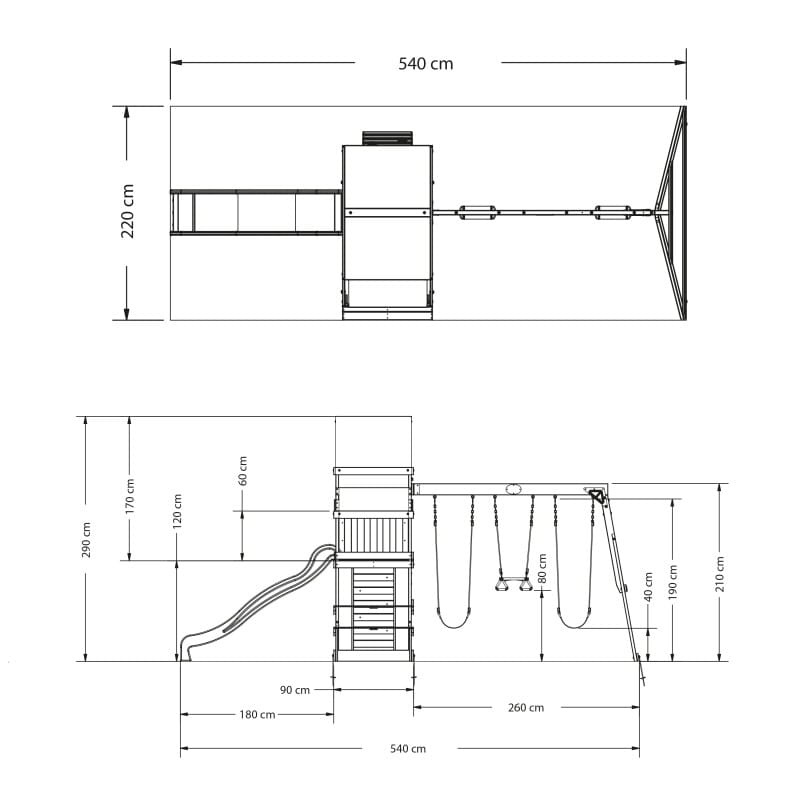 Konstrukcja placu zabaw Belmont powstała w całości z drewna cedrowego, które jest naturalnie bardzo wytrzymałe i odporne na gnicie