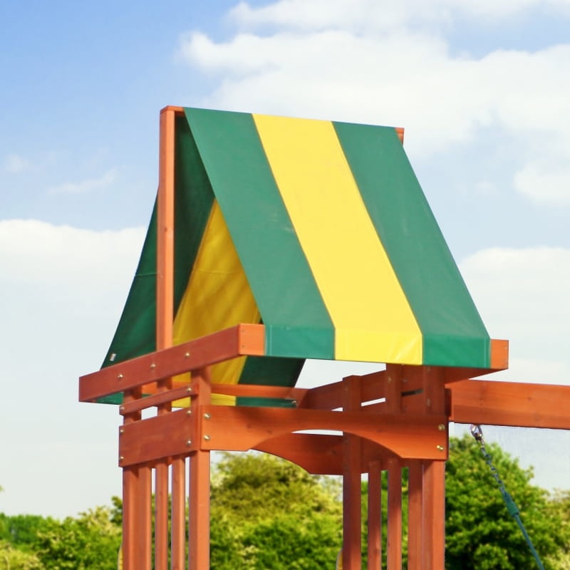Znajdziemy tu platformę z pofalowaną zjeżdżalnią, na którą dostać się można dzięki bezpiecznej drabince, która pełni również rolę ściany wspinaczkowej. Całość przykrywa kolorowy baldachim.