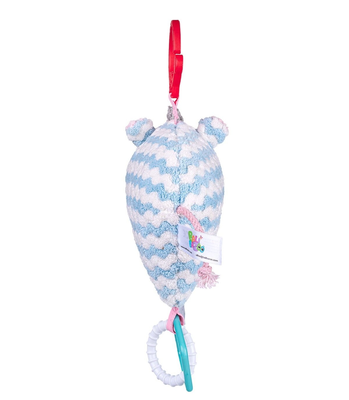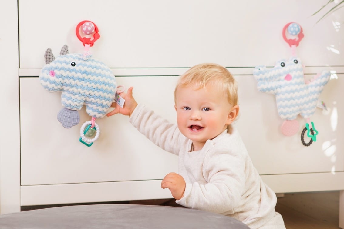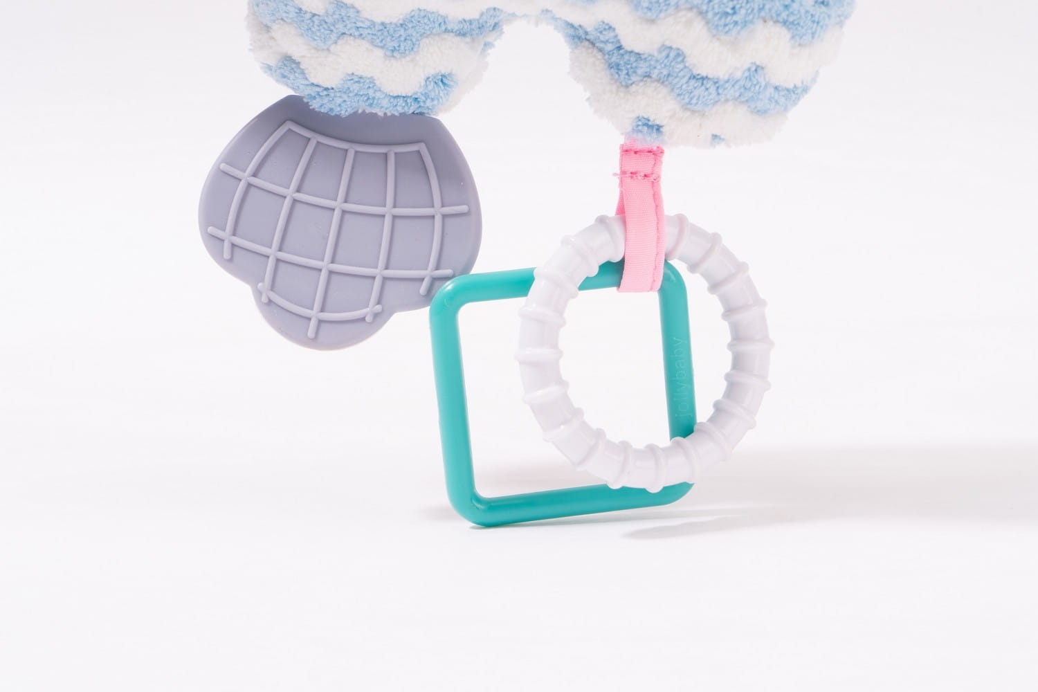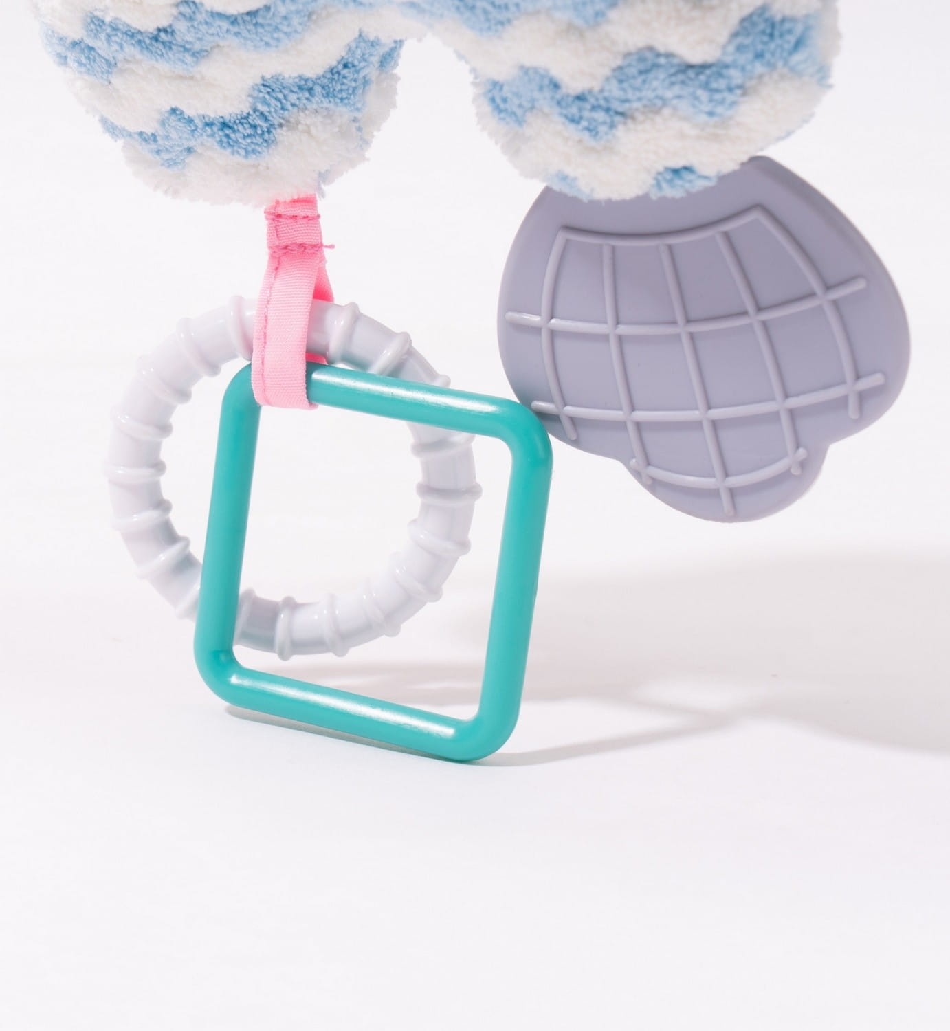 Pastelowy koleżka, w którym z pewnością zakocha się niejeden bobas! Nosorożec wyposażony jest w  3 gryzaczki, które przyniosą ulgę obolałym dziąsłom ząbkującego malucha. W zabawce kryje się dzwoneczek, dzięki czemu zwierzak wydaje wesoły dźwięk przy potrząsaniu. Wykonany z fakturowanego materiału Nosorożec, stymuluje zmysł dotyku i wzroku dziecka, a jego stonowane kolory nadają mu niepowtarzalnego charakteru. Praktyczny uchwyt pozwoli przymocować zabawkę w wybranym miejscu.