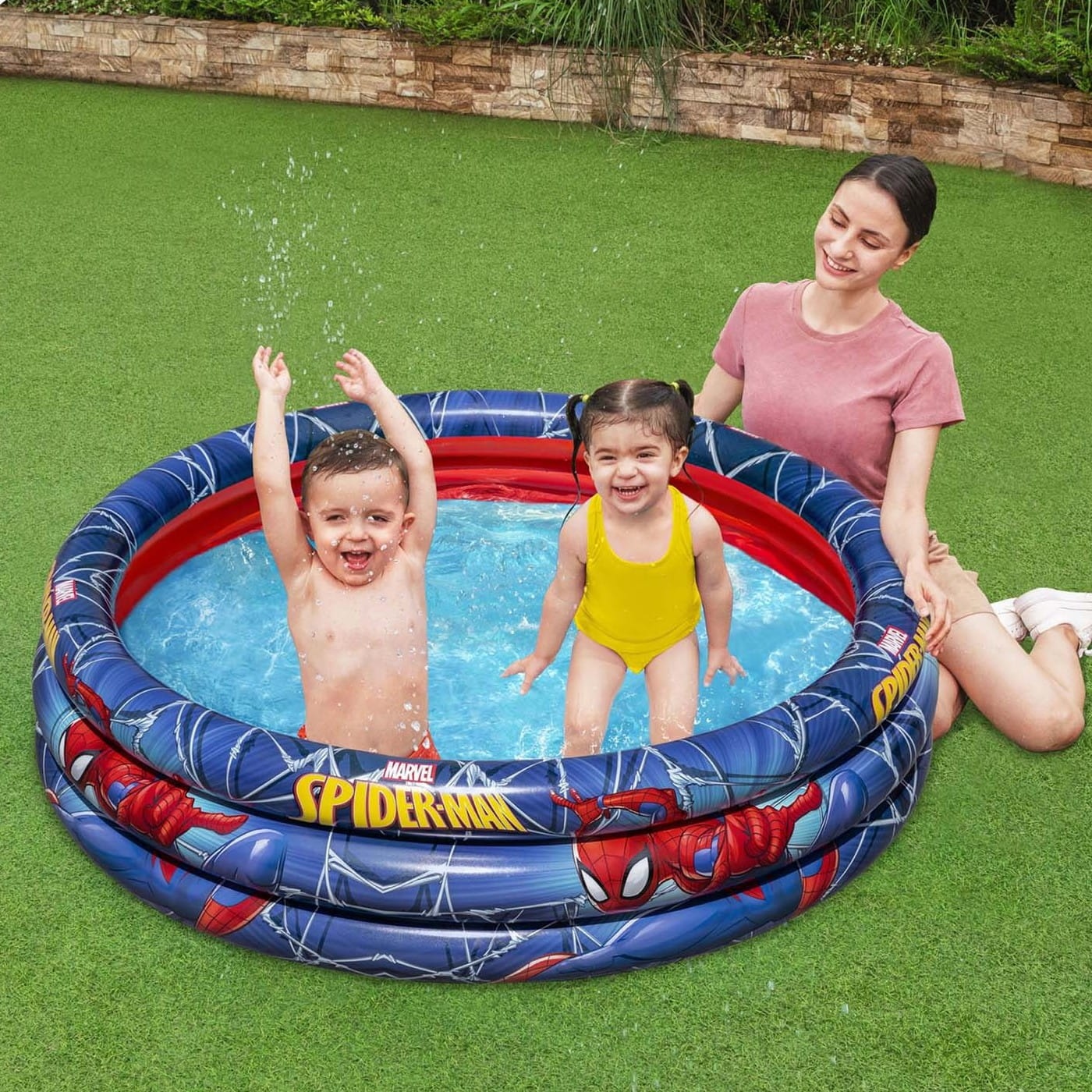 Dmuchany basen z motywem Spidermana stanie się doskonałym sposobem na letni  wypoczynek dla Twoich pociech. Basen jest lekki więc bez problemu uda Ci się przenieść go w najbardziej odpowiednie dla Ciebie miejsce, w którym Twoje dzieci będą mogły beztrosko cieszyć się promieniami słońca i niezapomnianą zabawą.  Niewielka wysokość basenu oraz jego powierzchnia sprawiają, że woda w basenie szybko się nagrzewa, dzięki czemu maluchy nie będą musiały długo czekać, aby móc rozpocząć zabawę.