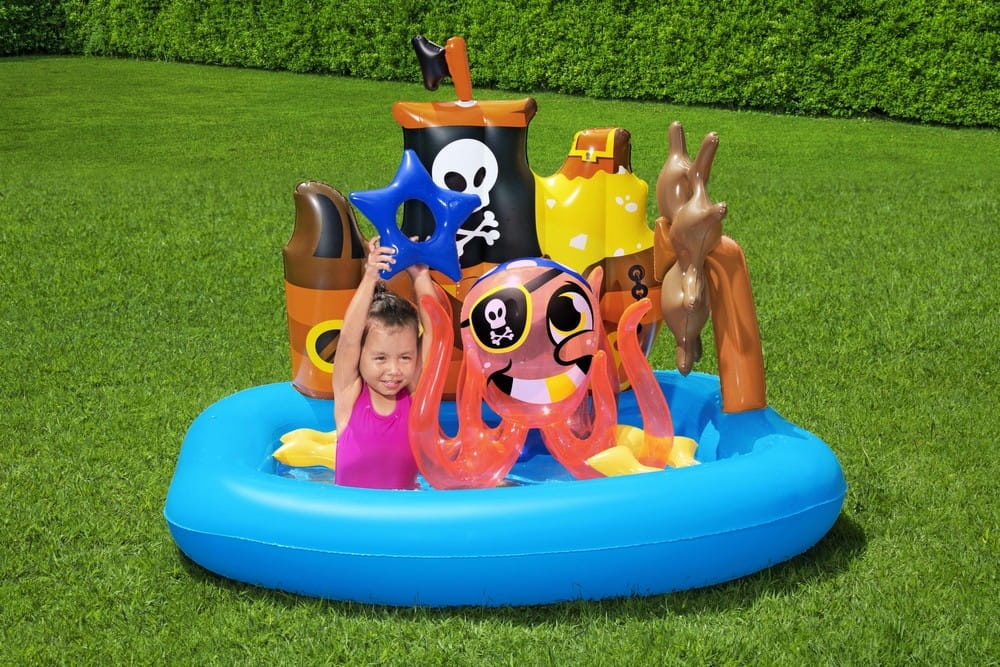 Dmuchany brodzik z akcesoriami to propozycja przygotowana specjalnie dla najmłodszych dzieci. Wbudowany dmuchany ster oraz łódka pozwolą każdemu maluchowi poczuć się jak prawdziwy kapitan statku pirackiego. W zestawie znajduje się również dmuchana ośmiornica oraz obręcze do rzucania, które uatrakcyjnią zabawę.