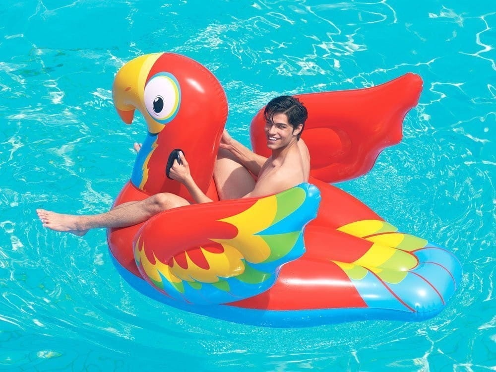 Dmuchany materac papuga to wspaniały sposób na letni odpoczynek. Piękna kolorystyka oraz niebanalny kształt z pewnością zachwycą wszystkich miłośników wodnego odpoczynku. Urozmaici on letnie zabawy oraz pozwoli się zrelaksować. Papuga posiada dwa stabilne uchwyty umiejscowione po dwóch stronach oraz szerokie siedzisko co zapewnia stabilność oraz wygodę w użytkowaniu. Materac jest wykonany z wytrzymałego materiału winylowego o grubości 0,32 mm dzięki czemu jest on odporny na uszkodzenia zarówno mechaniczne jak i te, które mogą być powodowane przez promienie słoneczne bądź wodę morską.