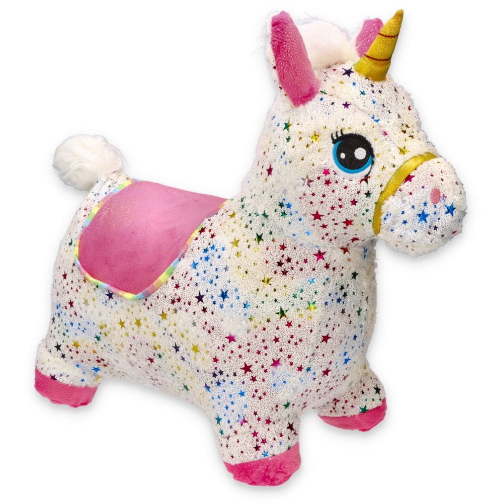 BIAŁY SKOCZEK JEDNOROŻEC GWIAZDKI Z POKROWCEM I POMPKĄ GS016