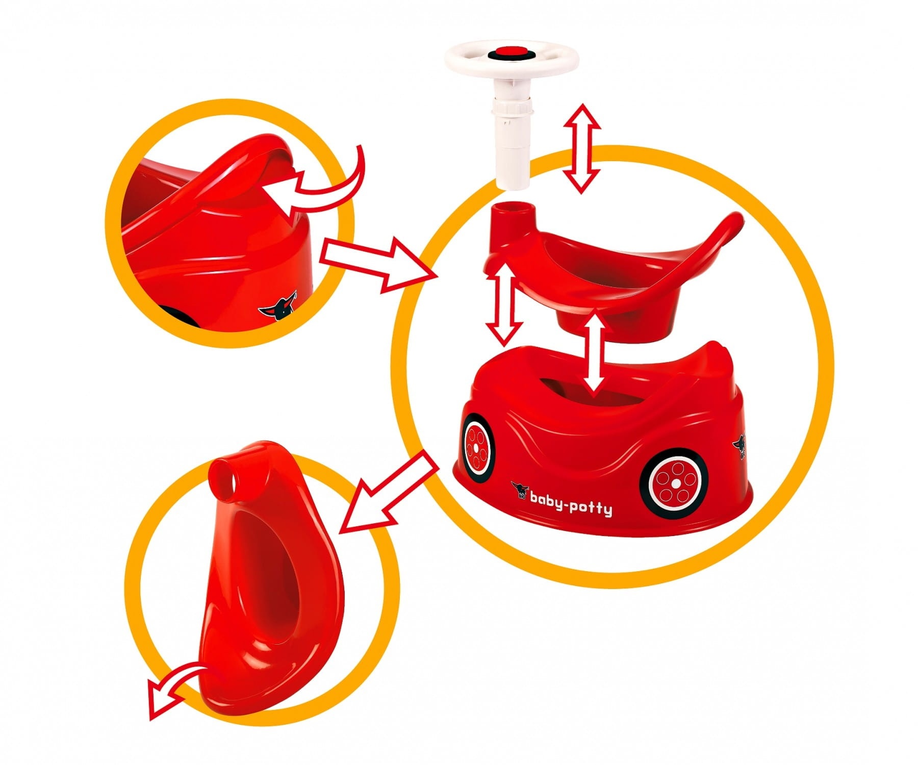 Dzięki nocniczkowi BIG, nawiązującym stylistycznie do jeździków Bobby Car, nauka siusiania nie będzie dla dziecka tak bardzo stresującym przeżyciem.