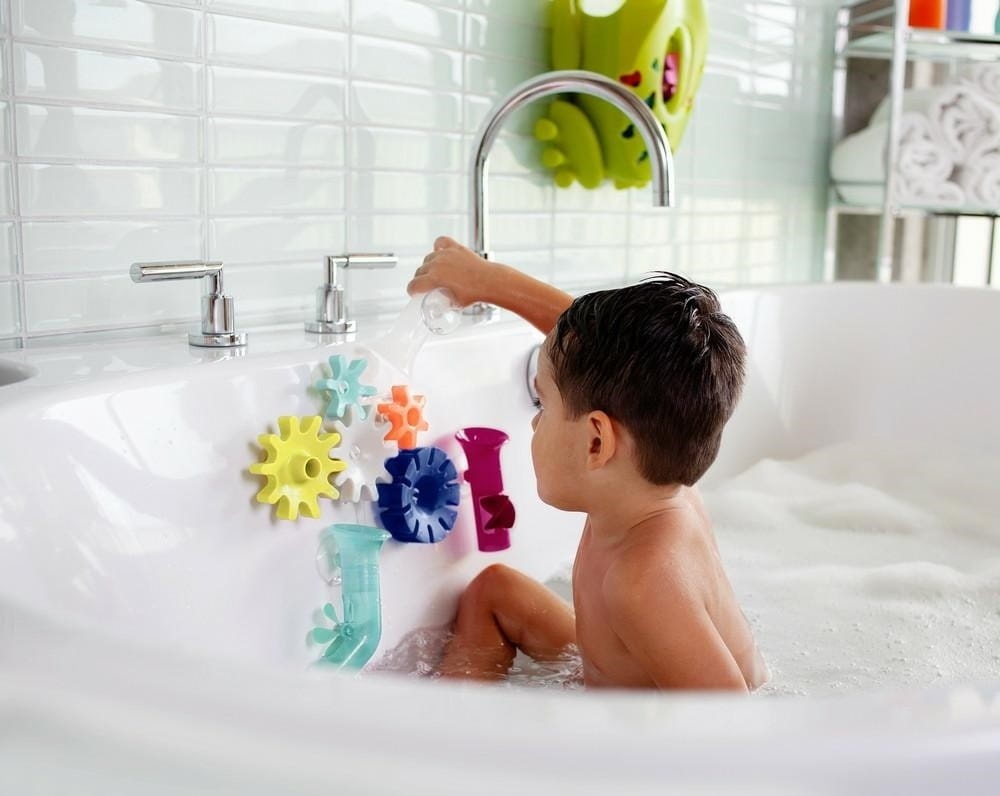 Mechanizm + woda = godziny zabaw w kąpieli. Zębate Koła to przyssawki do ścian, które wprawiamy w ruch, oblewając wodą. Prawidłowo umieszczone, pracują jak dobrze wyregulowane (choć nieidealnie naoliwione) maszyny. Zębate Koła stanowią również świetne połączenie z  Zabawką do kąpieli Pipes Boon (do kupienia oddzielnie), aby zmaksymalizować frajdę z zabawy w wannie. Aqua-inżynierzy łączcie się!