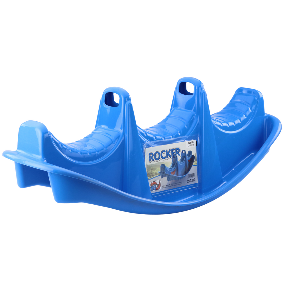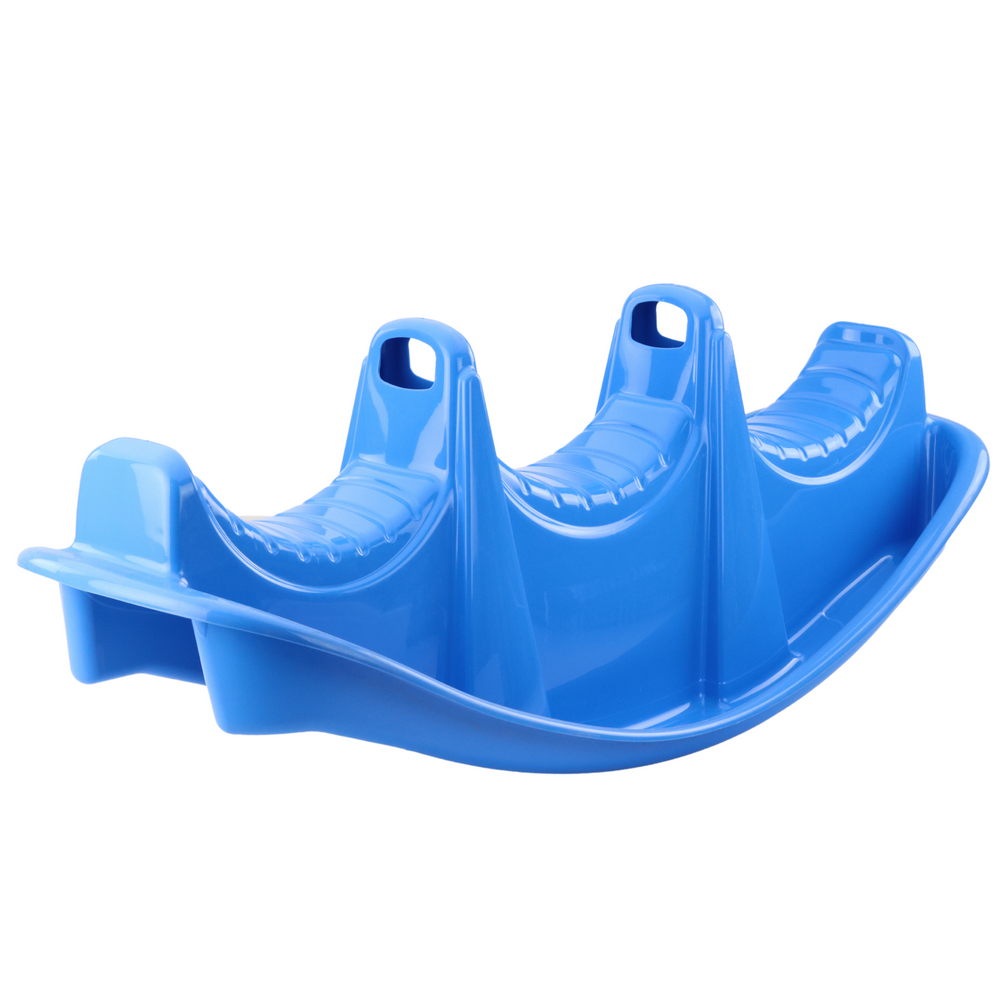 Zabawka została zaprojektowana z myślą o trójce dzieci – każde ma do dyspozycji własne siedzisko oraz ergonomiczny uchwyt. Kołyszący ruch bujaka wspomaga rozwój koordynacji ruchowej i równowagi, a wspólna zabawa zachęca do integracji. Zaokrąglone krawędzie i wyprofilowane formy gwarantują bezpieczeństwo, a intensywny niebieski kolor przyciąga wzrok i dodaje uroku.