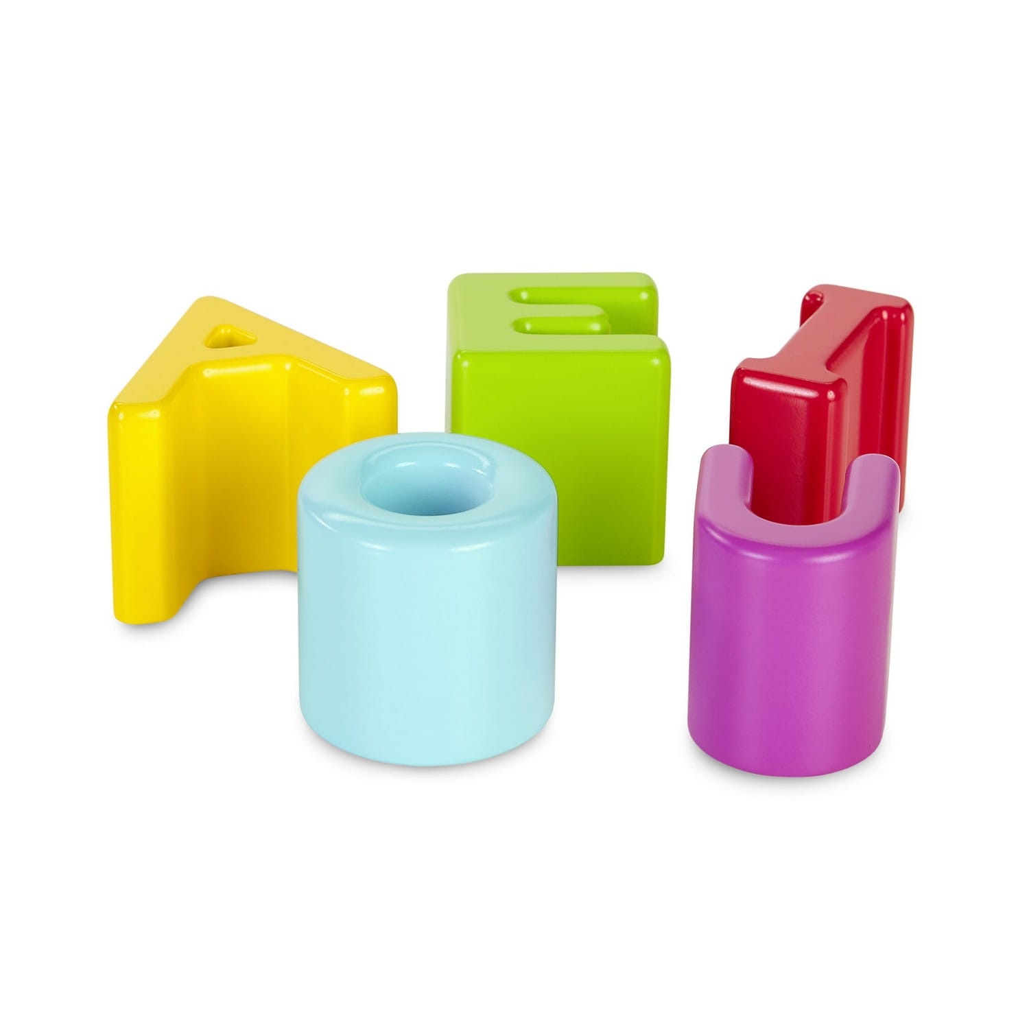 W zestawie: 5 kształtów i 5 samogłosek 3D.