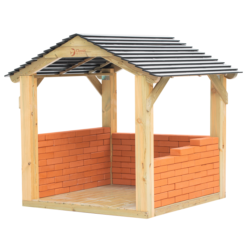 Domek Altana od renomowanej marki Classic World to idealne dopełnienie placu zabaw! Produkt jest wyprodukowany z wysokiej jakości drewna, pomalowany nie toksycznym impregnatem, w pełni bezpiecznym dla dzieci. Świetną zabawą może być układanie ścian domu. Produkt wysokiej jakości!
