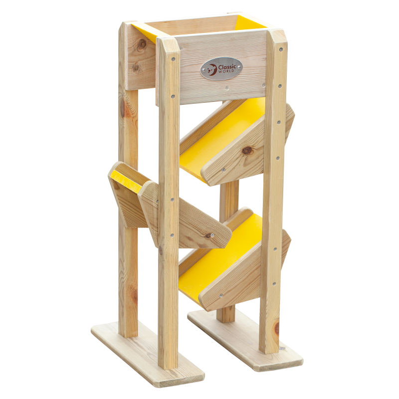 Zjeżdżalnia na piasek dla dzieci od renomowanej marki Classic World to idealne dopełnienie twojej piaskownicy! Produkt jest wyprodukowany z wysokiej jakości drewna, pomalowany nie toksycznym impregnatem, w pełni bezpiecznym dla dzieci. Po prostu napełnij lejek piaskiem i obserwuj jak sypie się przez dziurkę na strome boki zabawki tworząc dla piasku zjeżdżalnię.