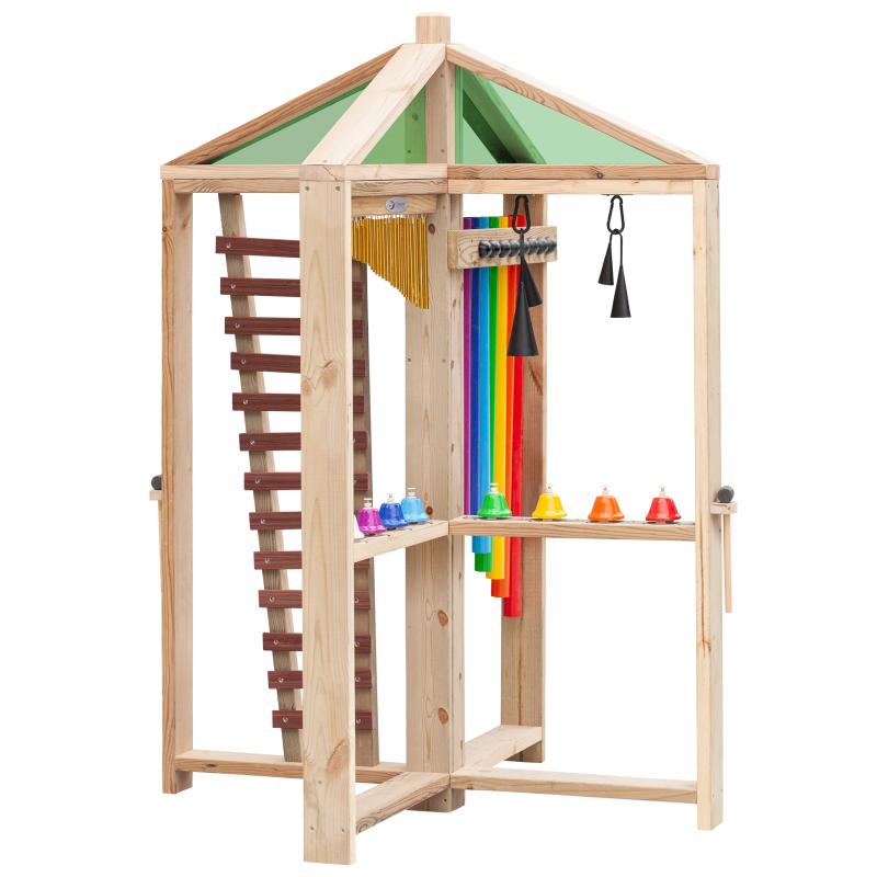 Muzyczny Plac Zabaw od marki CLASSIC WORLD z serii EDU sprawią, że ogród, plac zabaw czy dowolne miejsce na świeżym powietrzu, wypełni się muzyką! Ten wspaniały plac zabaw to świetny sposób dla dzieci w każdym wieku na komponowanie harmonii i rytmów. Dodatkowo stwarza okazje do wyrażenia siebie podczas komponowania - wpłynie pozytywnie na śmiałość i pewność siebie u dziecka. Wykonane z wysokiej jakości drewna odpornego na warunki atmosferyczne, pochodzącego ze zrównoważonych źródeł.