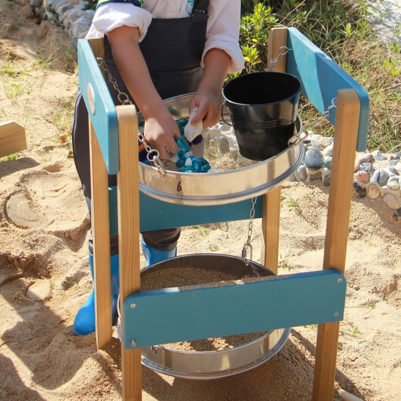 • - Zestaw doświadczalny- dziecko może obserwować proces przesiewania piasku, pomoże mu to zrozumieć ciąg przyczynowo-skutkowy