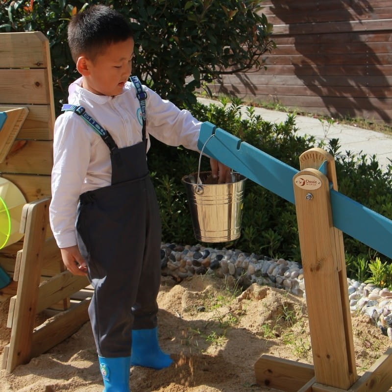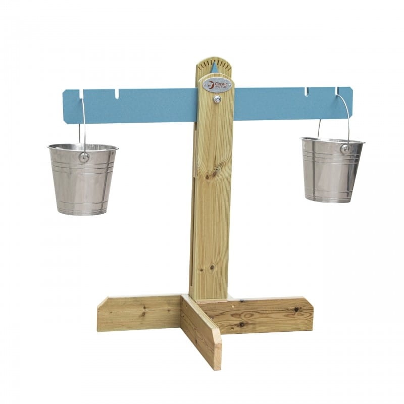 Waga równoważna dla dzieci od renomowanej marki Classic World. Produkt jest wyprodukowany z wysokiej jakości drewna, pomalowany nietoksycznym impregnatem, w pełni bezpiecznym dla dzieci. Napełnij metalowe wiaderka piaskiem, wodą, kamykami tak, aby dwa wiaderka znajdowały się w linii prostej. Idealny zestaw dla dzieci do rozwijania zdolności manualnych, kreatywności i zdolności logicznego myślenia.  Idealne do twojego domowego ogrodu!
