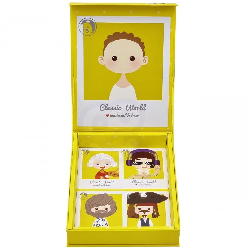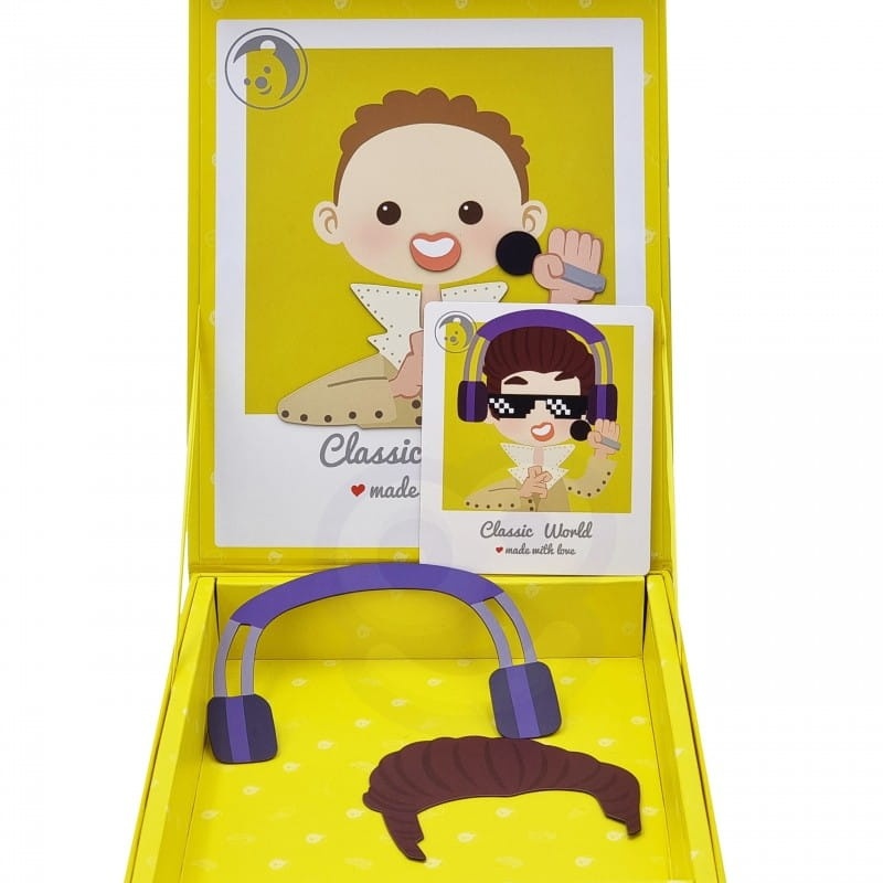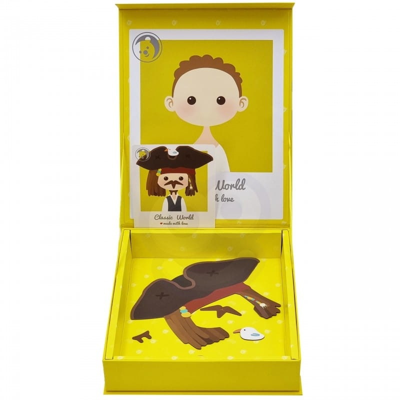 Magnetyczna układanka Classic World  zapewni dzieciom godziny świetnej zabawy. W zestawie znajdziemy aż 32 elementy, w tym 8 kart ze wzorami chłopców w różnych przebraniach. Dziecko może korzystać z kart, aby ułożyć układankę wg wzoru lub też może dowolnie łączyć elementy tworząc niepowtarzalne kreacje. Mocne magnesy zapewniają, że żaden element nie spadnie. Opakowanie jest poręczne, dzięki czemu układankę można zabrać ze sobą np. w podróż czy do dziadków. Zabawka rozwija wyobraźnię i kreatywność dziecka a także je zabrać wszędzie. Pięknie wykonana zabawka rozbudza zmysł artystyczny, ćwiczy logiczne myślenie oraz koordynację manualną. Dodatkowo rozwija wyobraźnię i kreatywność Twojego dziecka.