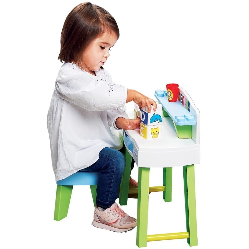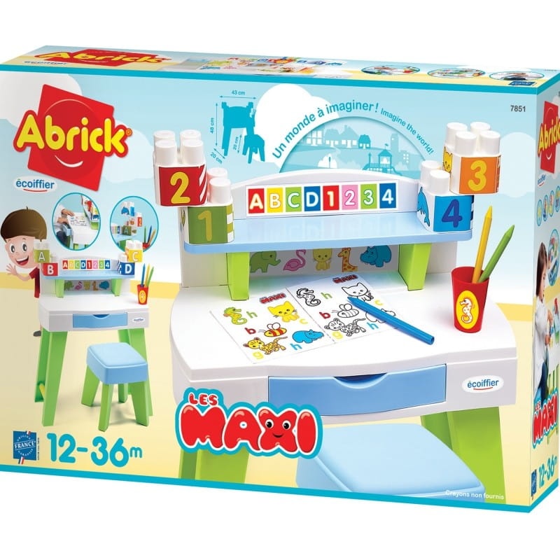 Usiądź wygodnie i zacznij naukę poprzez zabawę dzięki kompaktowemu biurku Ecoiffier Maxi Abrick z modułami edukacyjnymi. Najmłodsi otrzymają swoje własne biurko, przy którym będą mogli malować, budować, odkrywać i ćwiczyć cyfry i litery. Zestaw zawiera kolorowanki, kubek na przybory oraz klocki Maxi Abrick z cyferkami i motywami zwierzęcymi. Szuflada zapewni miejsce na rysunki.