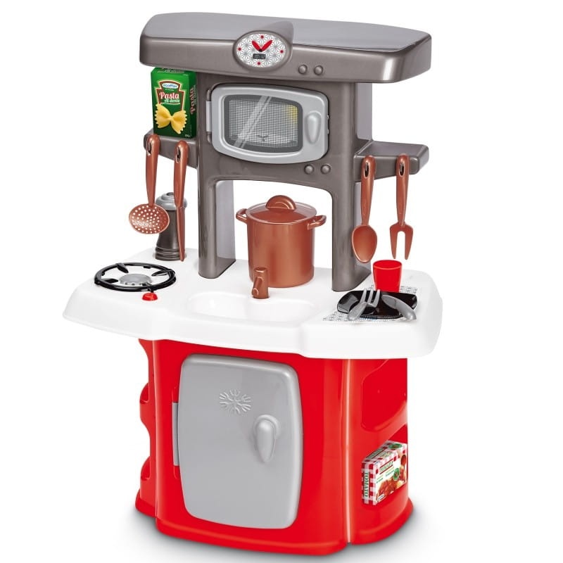 • realistyczne funkcje kuchni, wbudowany zlew z kranem, duży blat, lodówka a także dużo  miejsca na naczynia i inne akcesoria