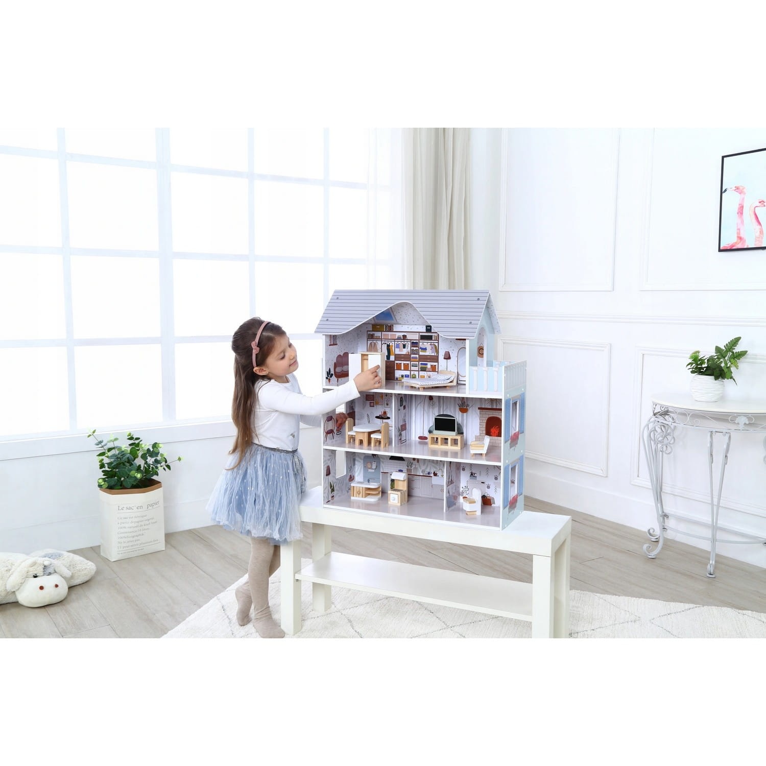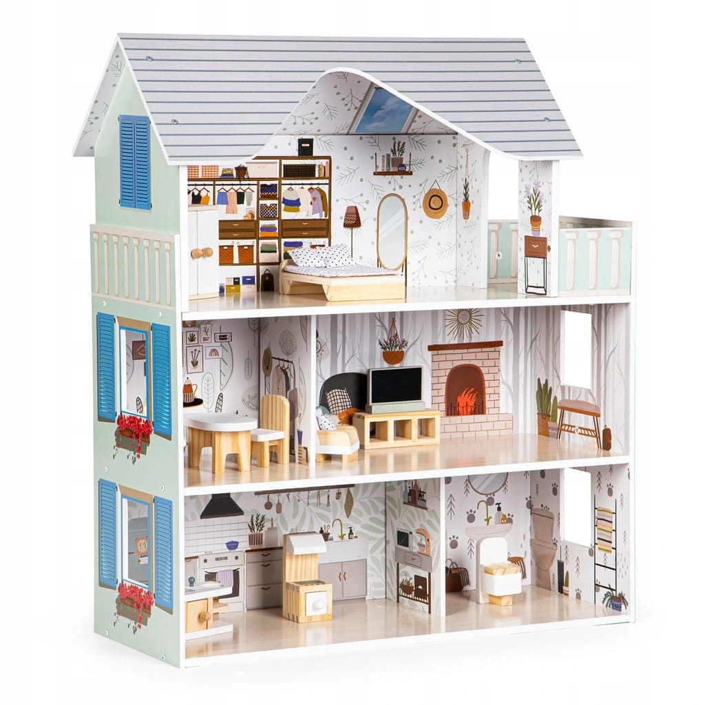 ECOTOYS DREWNIANY DOMEK DLA LALEK Z MEBLAMI REZYDENCJA EMMA 8301