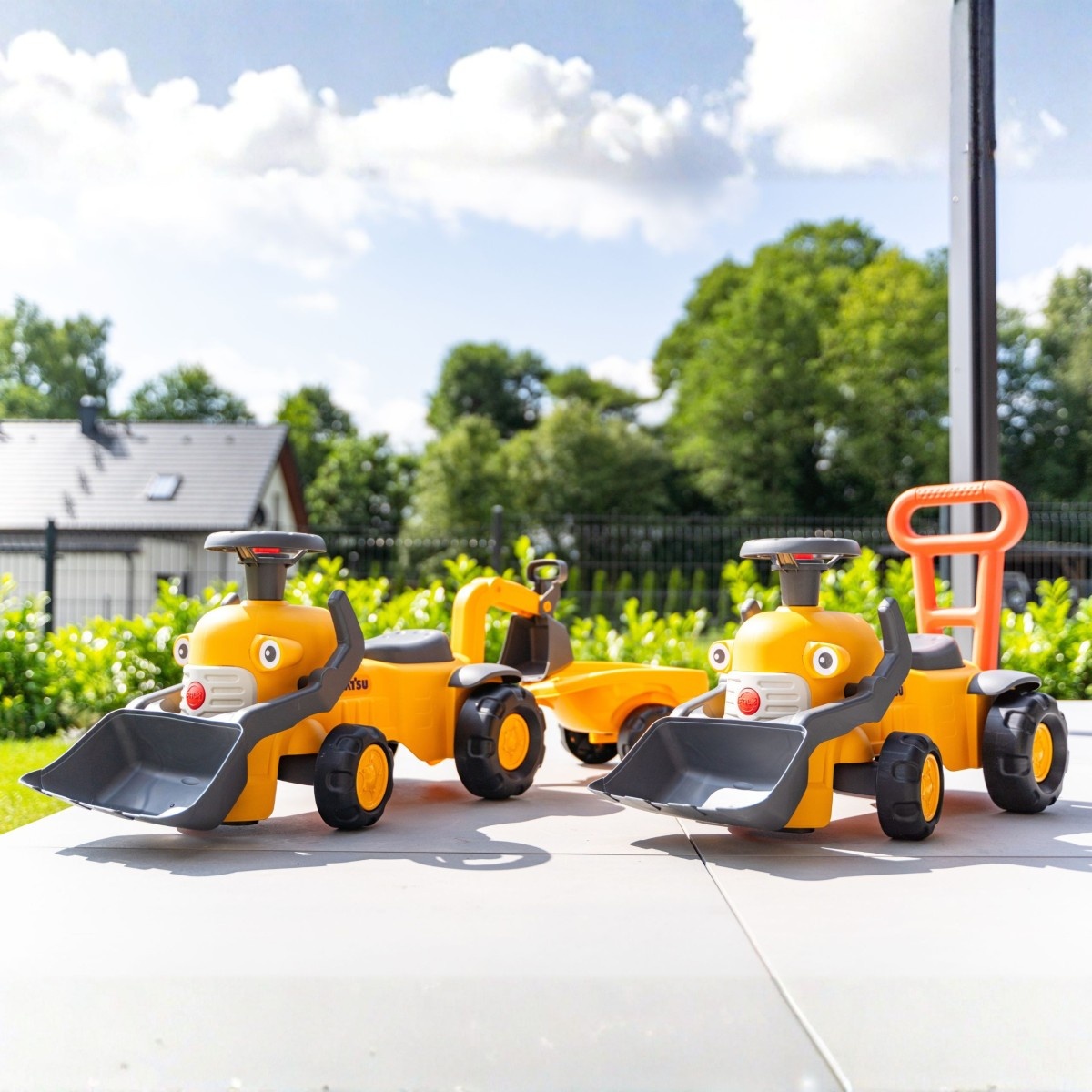 FALK prezentuje uroczy traktor Komatsu, który został zaprojektowany, aby towarzyszyć dzieciom od 1 do 3 roku życia. Ten wyjątkowy jeździk łączy w sobie tradycję i nowoczesność, będąc hołdem dla 75 lat doświadczenia marki. Wyprodukowany w 100% we Francji, z myślą o ekologii, składa się w co najmniej 90% z plastiku pochodzącego z recyklingu. Pojazd wyposażony jest w pełni funkcjonalną przednią łyżkę, którą maluch może sterować, oraz kierownicę z klaksonem, co zapewnia mnóstwo frajdy podczas zabawy. Dzięki ergonomicznej rurce (oparciu), zabawka pełni również funkcję pchacza, wspierając dziecko w stawianiu pierwszych kroków i rozwijaniu równowagi.
