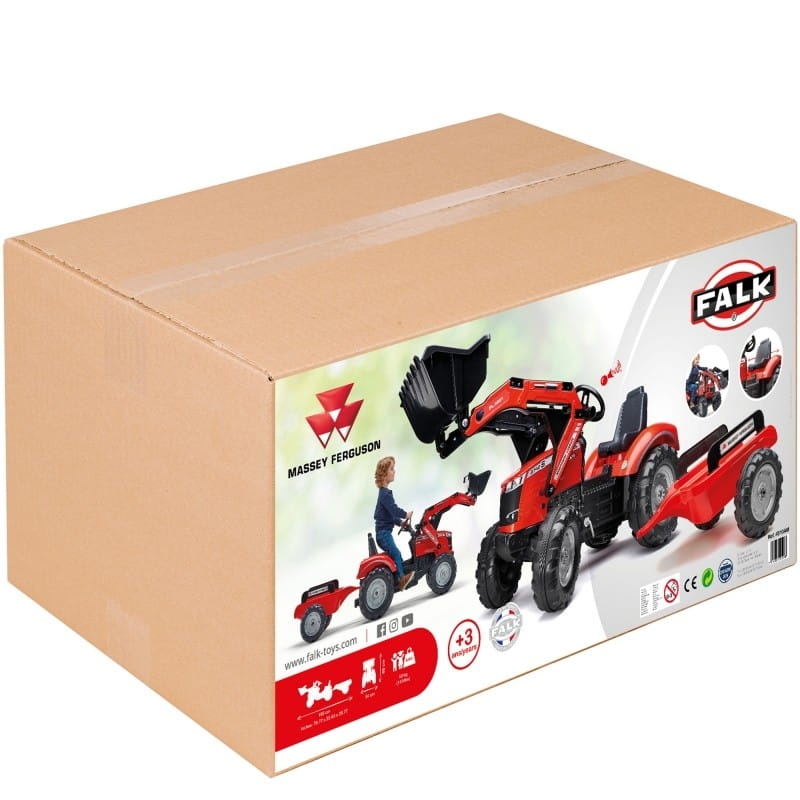 Traktor na pedały z przyczepą Massey Ferguson producenta FALK to spełnienie marzeń niejednego małego traktorzysty. Starannie wykonany, z dbałością o najmniejszy szczegół! Żaden Farmer by takim nie pogardził. Pojazd wykonany z najwyższej jakości tworzywa przeznaczony dla dzieci w wieku od 3 lat. Pojazd jest wyposażony w przednią łyżkę, odpinaną przyczepę z panelami oraz kierownicę z klaksonem. Koła traktorka zostały wykonane z wysokiej jakości plastiku.
