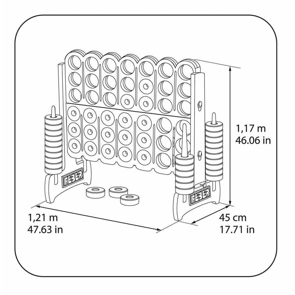 Gra "4 w rzędzie" opiera się na podobnych zasadach, co popularna gra w "Kółko i krzyżyk". Zestaw zawiera krążki w dwóch kolorach: 21 krążków zielonych i 21 krążków purpurowych. Każdy gracz dysponuje krążkami w jednym kolorze. Gra polega na naprzemiennym wrzucaniu krążków w szczeliny, aż do ułożenia czterech krążków jednego koloru w linii. Oczywiście wygrywa zawodnik, który wykona zadanie jako pierwszy.