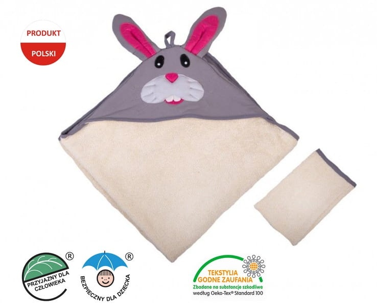 Ręcznik dobrze wchłania wilgoć, jest idealny dla delikatnej i wrażliwej skóry dziecka. Poza tym ręczniczek posiada obszerną zakładkę – kapturek, dzięki czemu doskonale chroni dziecko przed zimnem.