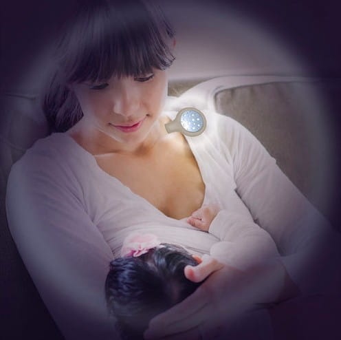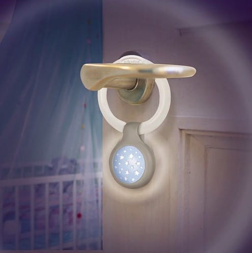 Lampka o delikatnym światełku, którą można przypiąć i powiesić w dowolnym miejscu. Uspokoi dziecko w czasie nocnego karmienia. Przycisk włącza, wyłącza i kontroluje natężenie światła (5 poziomów). Wyłącza się automatycznie po 20 minutach.