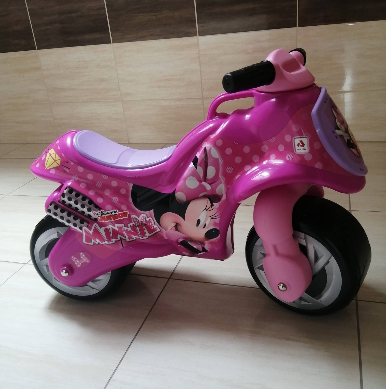 Wspaniały jeździk - rowerek biegowy z motywem Myszki Minnie zapewni dziecku doskonałą zabawę i dużą dawkę ruchu. Jazda na rowerku rozwija u dziecka równowagę i koordynację ruchową. Pojazd przeznaczony jest dla dzieci, które postawiły już swoje pierwsze kroki. Zbudowany tak, aby mogły wypróbować i rozwijać kolejne zdolności - wsiadanie, zsiadanie, odpychanie i kierowanie.