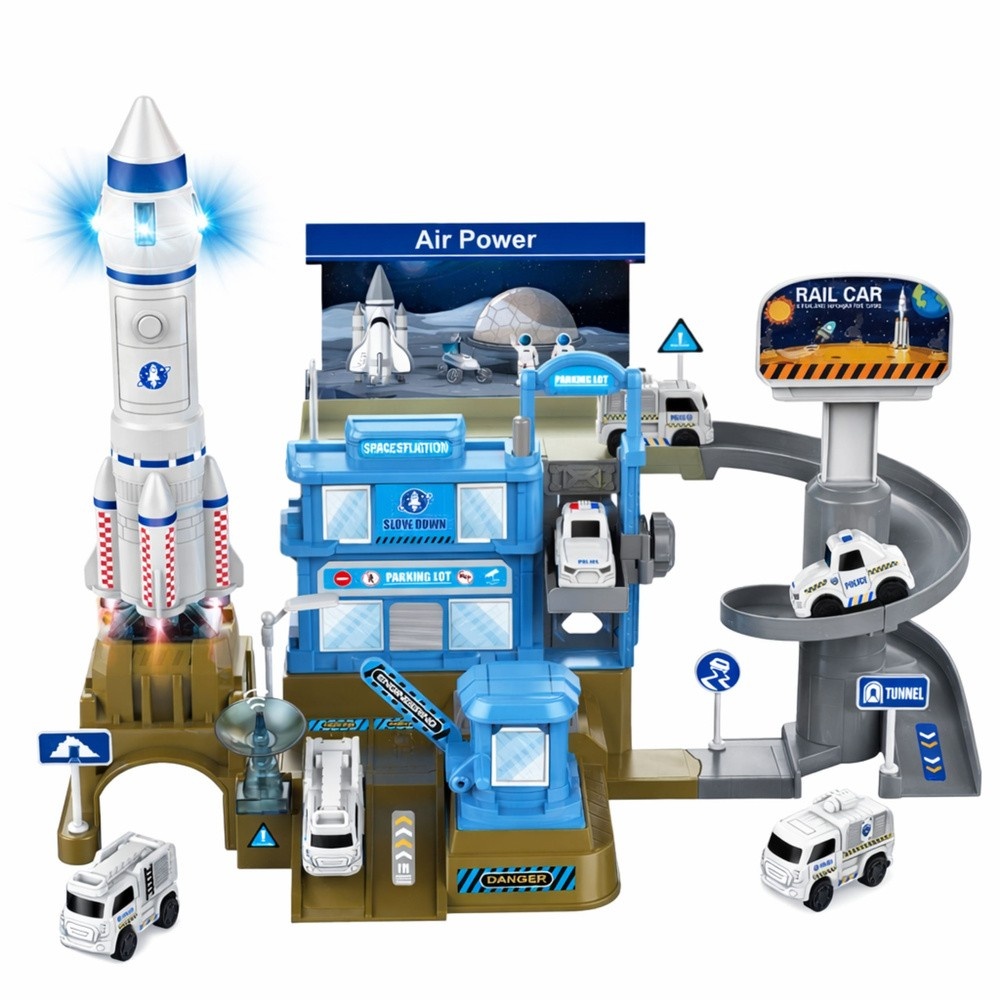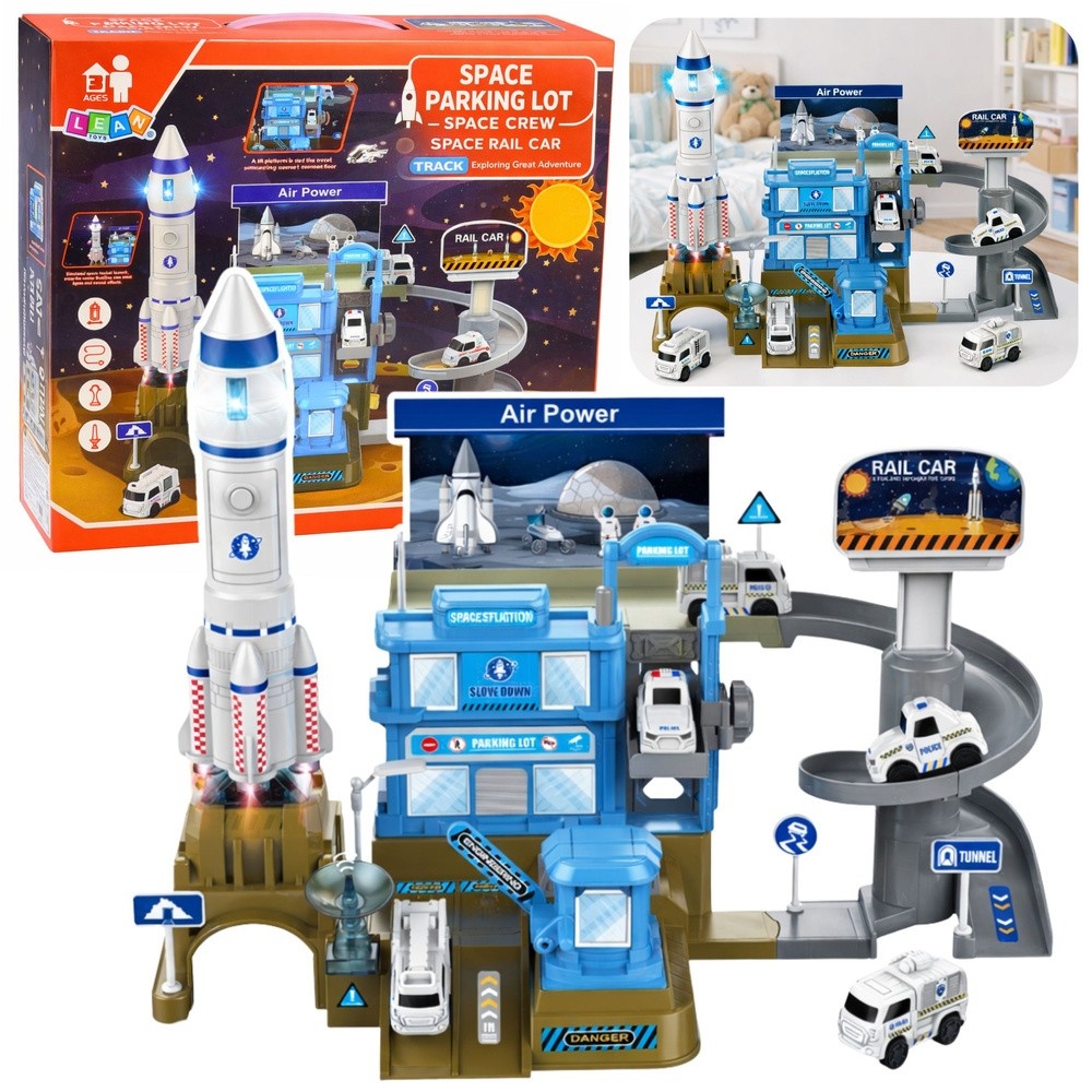 BAZA KOSMICZNA Z RAKIETĄ WIELOPOZIOMOWY PARKING ŚWIATŁA DŹWIĘKI