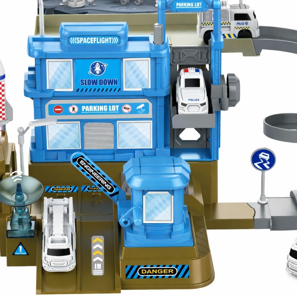 - Rodzaj zabawki: Baza kosmiczna z rakietą i parkingiem wielopoziomowym