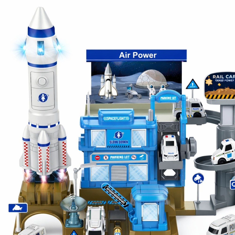 Centralnym elementem zestawu jest rakieta z efektami świetlnymi i dźwiękowymi, która sprawia, że start w kosmos staje się jeszcze bardziej realistyczny. Rakieta zasilana jest na baterie, dzięki czemu może emitować światła oraz dźwięki imitujące prawdziwy start. Dodatkowe elementy, takie jak pojazdy kosmiczne i infrastruktura bazy, umożliwiają tworzenie różnorodnych scenariuszy zabawy.