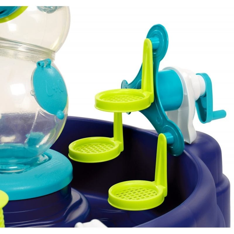 Stół wodny FOAMO marki Little Tikes to świetna propozycja zabawy w letnie dni. Stół wyposażony jest w maszynkę do robienia baniek mydlanych oraz piany. Wystarczy nacisnąć przycisk, aby uruchomić tworzenie pięknych, tęczowych baniek lub piany. Ponowne naciśnięcie przycisku zatrzyma pracę urządzenia. Środkowa wieża wypełnia się puszystą pianą, która przelewa się z otworów. Stół posiada ciekawe akcesoria do zabaw wodnych, m.in. diabelski młyn, który kręci się i zbiera pianę, a także ręczna pompka, która pozwala zrobić jeszcze więcej bąbelków. Wystarczy dodać płyn do baniek (sprzedawany oddzielenie), a stół wodny zawsze już będzie wypełniony bąbelkami.