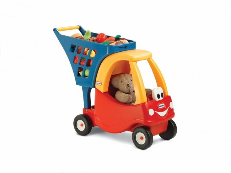 Rewelacyjny wózek na "zakupy" Little Tikes kształtem przypomina kultowy jeździk Cozy Coupe. Siedzenie w autku zmieści ulubionego misia lub lalkę. Ponadto do dyspozycji mamy kosz, który pomieści inne zabawki. Pojazd posiada cztery kółka, jest stabilny i z pewnością zachęci maluchy do zabawy. Zabawki widoczne na zdjęciu nie są dołączone do wyposażenia.