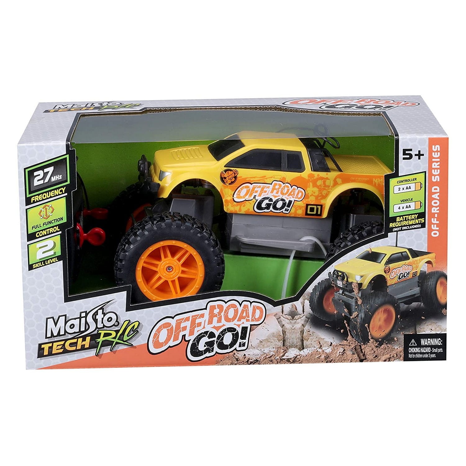 Pojazd OFF-ROAD GO! firmy Maisto to zdalnie sterowany samochód o świetnych właściwościach jezdnych lecz w troszkę mniejszej formie niż jego starszy brat Rock Crawler. Pojazd jest idealny dla młodszych dzieci. Ruchome zawieszenie, duże opony oraz napęd na 4 koła sprawiają, że zabawka świetnie sprawdzi się w terenie, czym z pewnością dostarczy ogromną frajdę dzieciom.