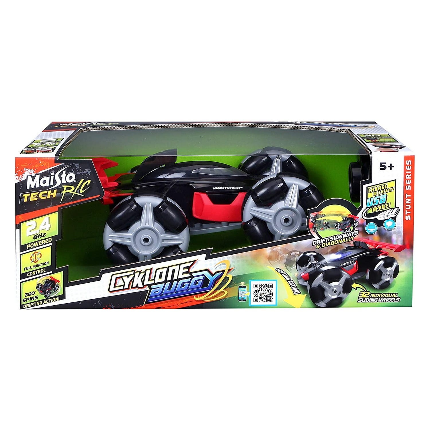 Ten futurystyczny, zdalnie sterowany pojazd Cyklone Buggy może wykonywać drifty zarówno do przodu, jak i na boki oraz obracać się o 360 stopni. Jest to możliwe dzięki zastosowaniu unikalnej konstrukcji podwójnych kół. Poręczny pilot pozwala na sterowanie pojazdem do przodu, do tyłu, w prawo i w lewo. Zasięg nadajnika wynosi do 35 metrów. Częstotliwość pracy pilota to 2,4 GHz.