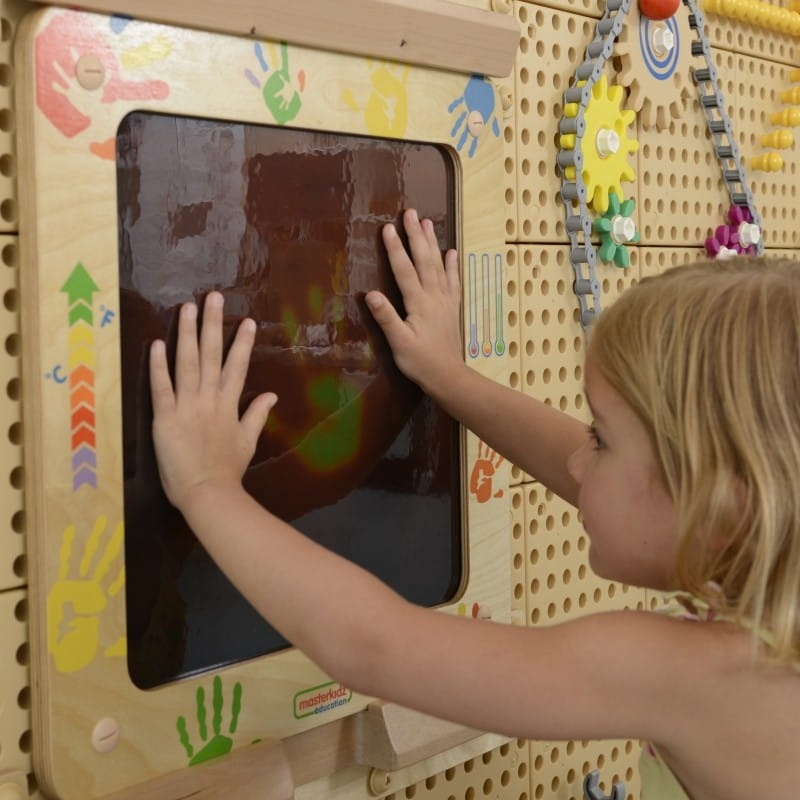 • Duża tablica o wielkości 46 x 46 cm pozwala na zabawę wielu dzieci jednocześnie. Wszystkie dzieci mogą dotykać tablicy i porównywać odciski, które powstają. Można w ten sposób określić kto ma cieplejsze dłonie, a komu marzną rączki.