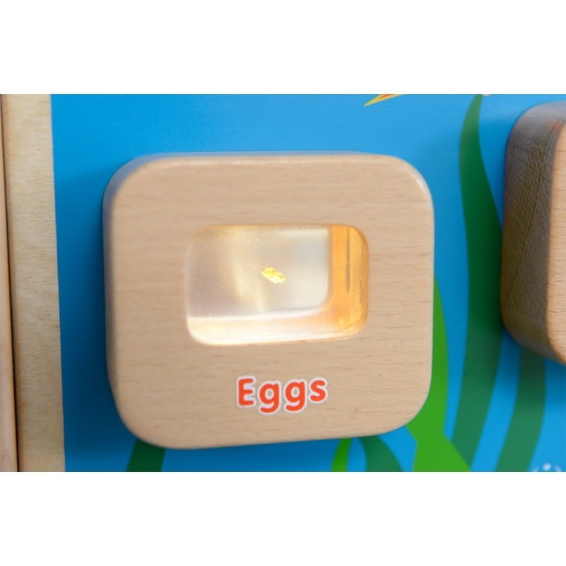 • Tablica posiada angielskojęzyczne napisy, dzięki czemu maluch uczy się dodatkowo języka.