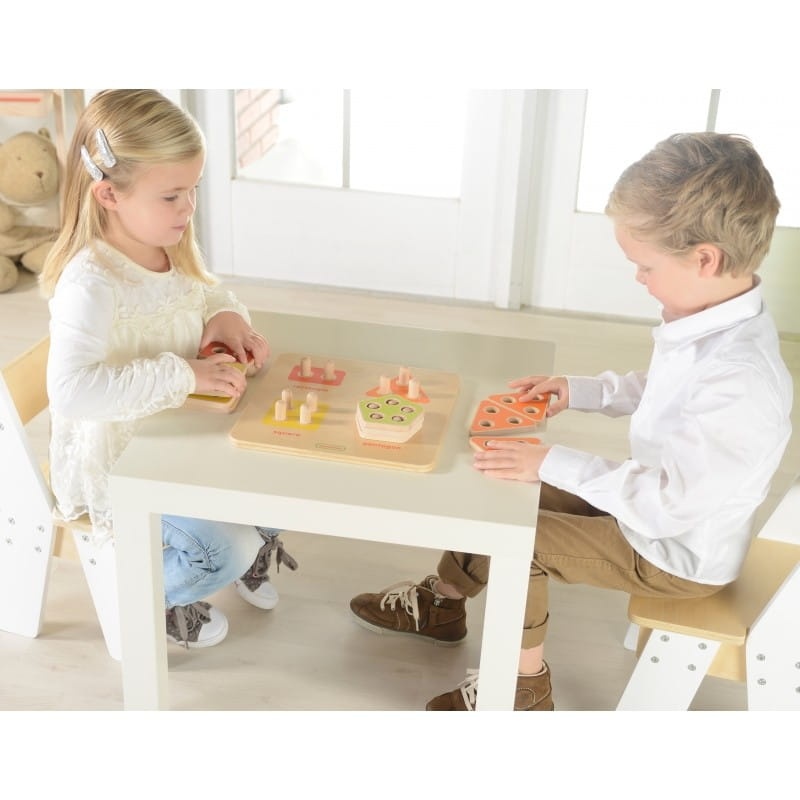 Wykonana z drewna tablica - kolorowy sorter kształtów marki Masterkidz to świetna zabawka edukacyjna, dzięki której dziecko pozna nazwy różnych figur geometrycznych oraz ich charakterystyczne cechy. Jednocześnie, zabawka może być używana także do nauki matematyki. Każda z figur odpowiada konkretnej ilości kołeczków, więc można je łączyć w kombinacje i wykonywać w ten sposób działania matematyczne.