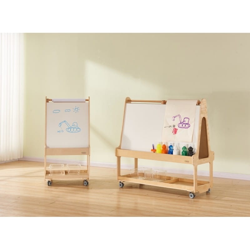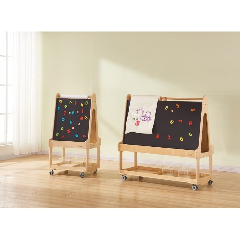 Mobilna, dwustronna tablica magnetyczna i kredowa pozwoli dzieciom rozwijać swoje zdolności artystyczne. Dzieci uwielbiają malować wszędzie, gdzie się da, nawet po ścianach. Ciężko je przed tym powstrzymać. Dzięki tablicy mobilnej nasz otoczenie (przedszkole, dom) stanie się atrakcyjne dla dzieci
