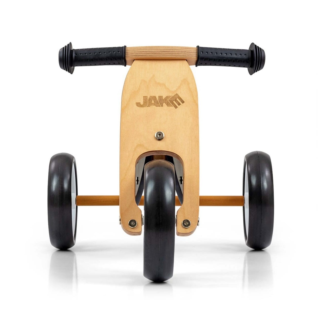 Rowerek biegowy Jake firmy Milly Mally to idealne rozwiązanie dla maluszków, które dopiero rozpoczynają swoją przygodę z rowerkami i chciałyby się już samodzielnie przemieszczać, ale jeszcze nie potrafią utrzymać równowagi na dwóch kółkach. Trzy piankowe koła zapewniają stabilność, bezpieczeństwo i komfort jazdy zarówno w domu, jak i na zewnątrz a lekka i jednocześnie wytrzymała konstrukcja sprawdzi się w każdych warunkach. Niewątpliwą zaletą tego rowerka jest możliwość przerobienia go z rowerka (pojazdu) trójkołowego na dwukołowy rowerek biegowy. Dzięki temu Wasze dziecko będzie mogło dłużej się cieszyć z użytkowania tego niezwykłego rowerka, który będzie „rósł” wraz z nim.  Miękkie antypoślizgowe rękojeści z osłonkami zapewnią ochronę dłoni dziecka, a regulowana wysokość siodełka pozwoli dostosować odpowiednią wysokość do wzrostu dziecka. Rowerek posiada również ogranicznik skrętu, po to by dziecko nie wykręciło kierownicy uniemożliwiając sobie jazdę.