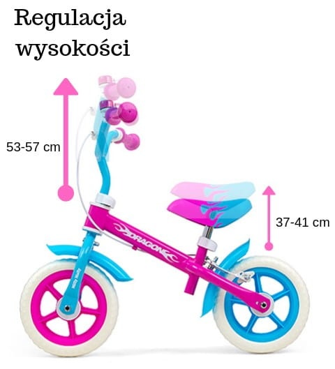 Rowerek biegowy Dragon firmy Milly Mally wyróżnia się ciekawym kształtem i żywymi kolorami. Rowerek posiada antypoślizgowe rączki, regulowane siodełko oraz kierownicę. Dla bezpieczeństwa rowerek posiada również blokadę skrętu kierownicy - jest to bardzo dobre rozwiązanie dla dzieci, które rozpoczynają przygodę z rowerkami biegowymi i nie mają jeszcze umiejętności trzymania kierownicy.
