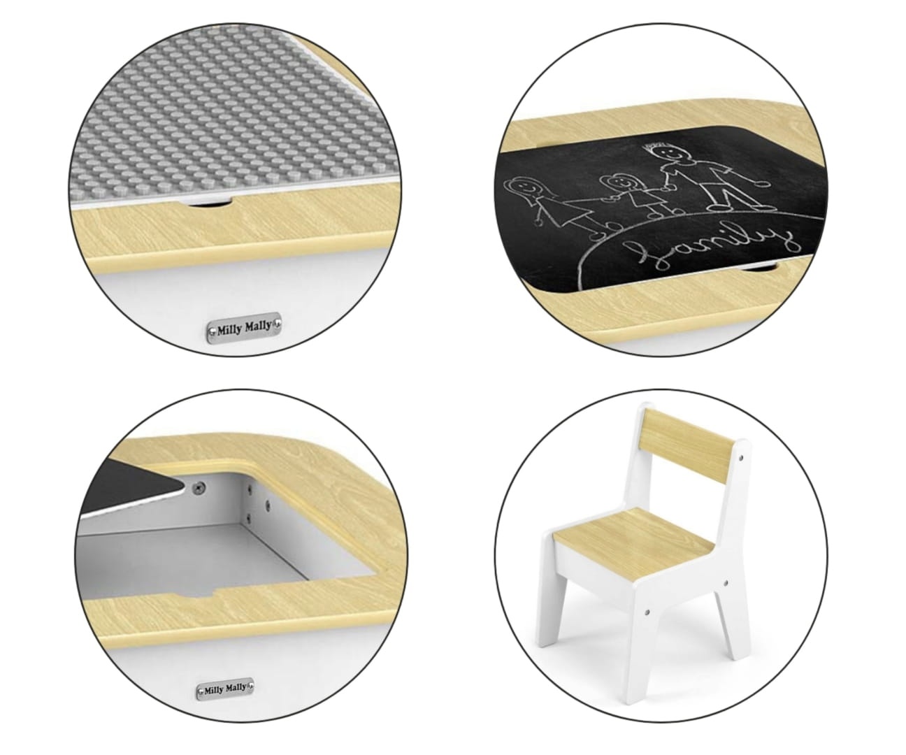 • Wielofunkcyjność: To nie tylko stolik i krzesełka, ale także przestrzeń do budowania, rysowania i przechowywania.