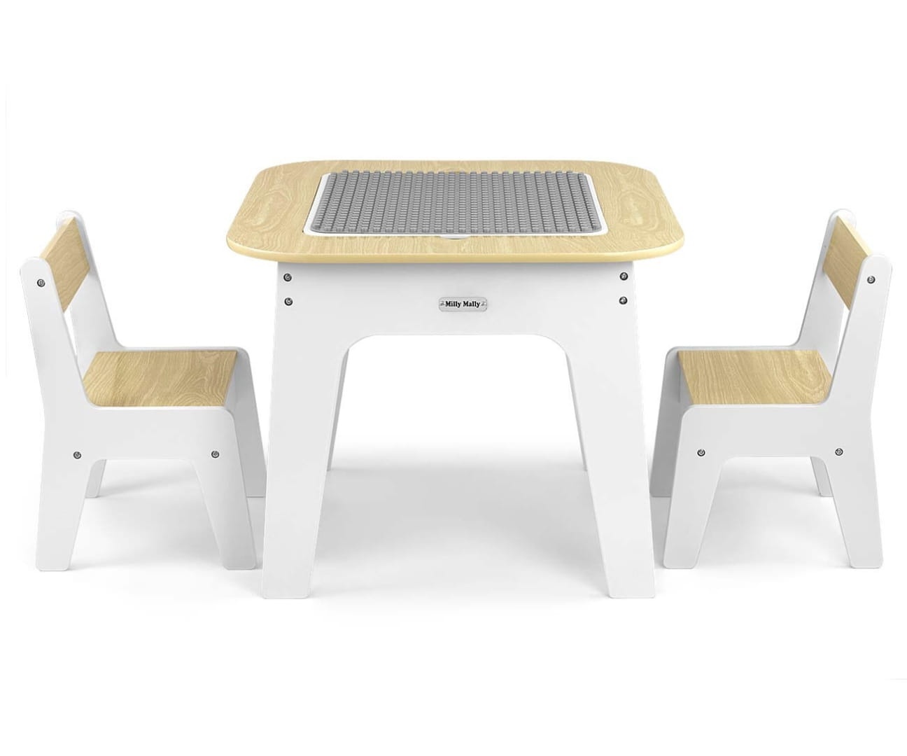 MILLY MALLY ZESTAW MEBLI DLA DZIECI STOLIK + 2 KRZESEŁKA OLAF BLOCKS WHITE