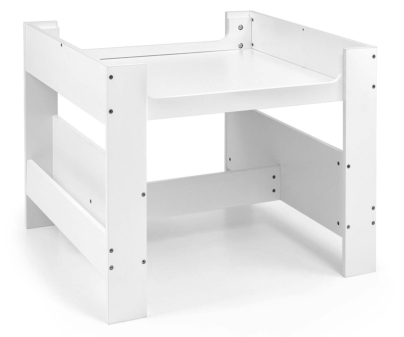 Zestaw SVEN to doskonałe miejsce dla dzieci, które lubią rysować, pisać, układać puzzle czy bawić się kreatywnie. Wyprofilowane otwory po bokach stolika umożliwiają łatwy dostęp do schowka pod blatem, co dodatkowo zachęca dzieci do zabawy i samodzielnego organizowania przestrzeni.