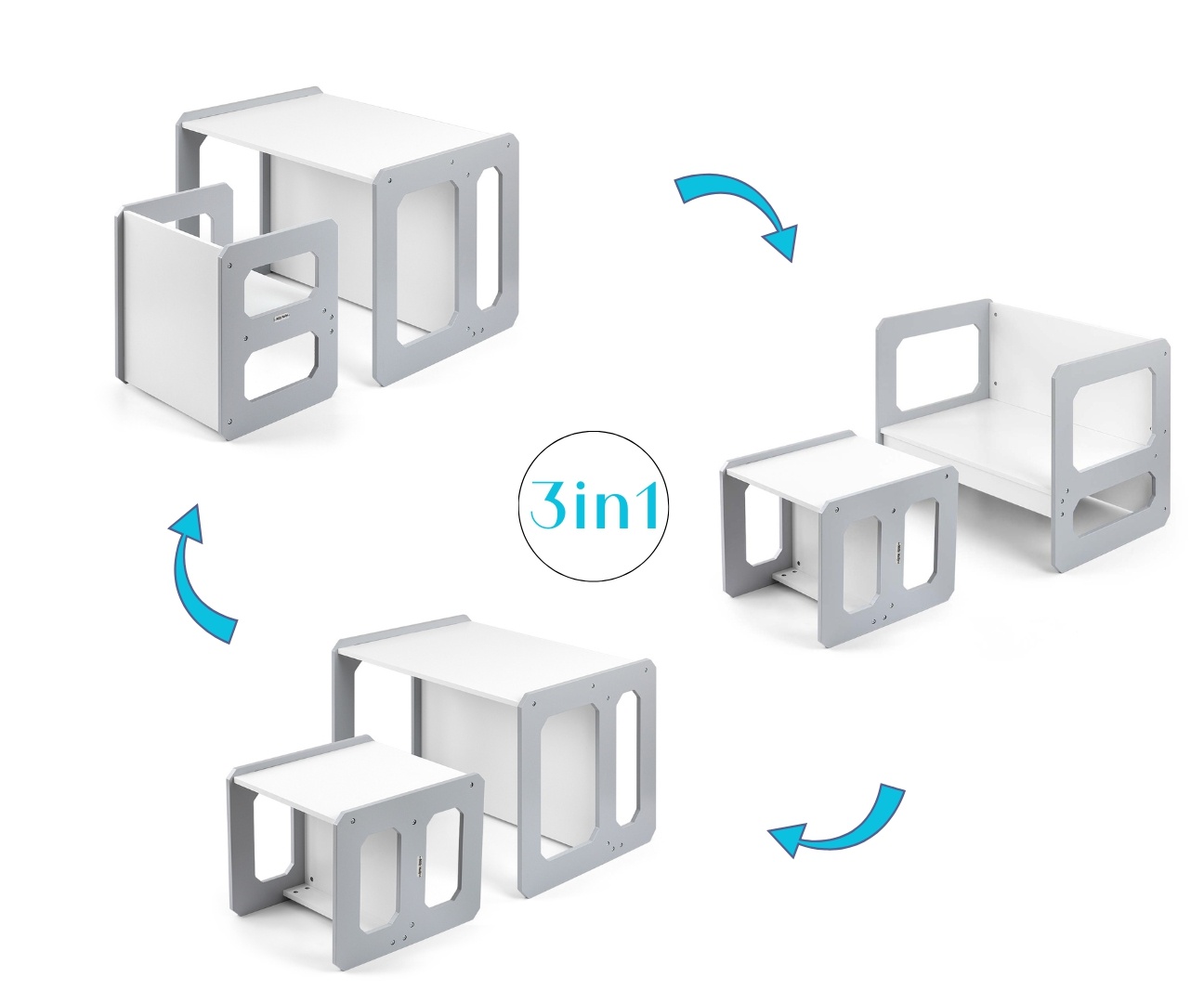 • modułowy zestaw mebli dziecięcych 3w1: stolik + krzesełko