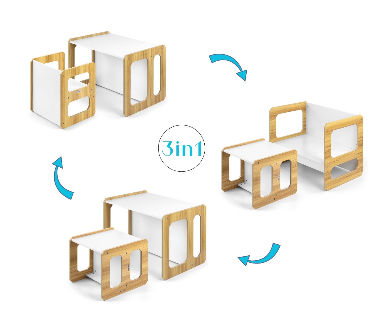 - modułowy zestaw mebli dziecięcych 3w1: stolik + krzesełko