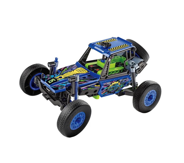 Zestaw do budowania modelu samochodu terenowego, który pozwala odkrywać świat mechaniki i inżynierii poprzez praktyczne doświadczenie.